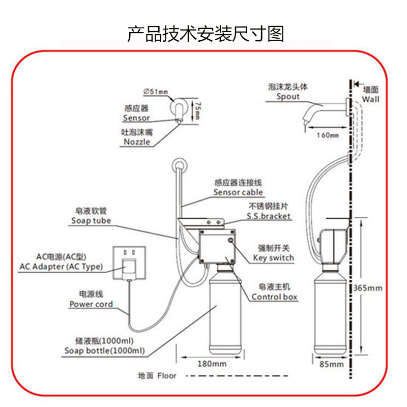 ACEYEA恩硕亚商用智能水龙头式全自动感应给皂器入墙电子皂液机