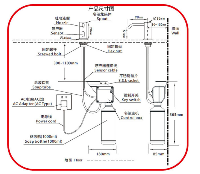 ACEYEA恩硕亚商用智能水龙头式全自动感应给皂器入墙电子皂液机